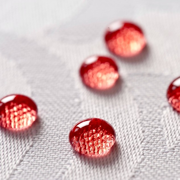 Nazwa "obrusy plamoodporne" oznacza obrusy, na powierzchni których po wylaniu płynu powstają kropelki. Efekt taki uzyskujemy na tkaninach, które zostały wykończone tzw. apreturą plamoodporną. Stanowią ją głównie związki fluorkarbonu, które w procesie napawania (kąpieli) tkaniny otaczają jej włókna, tworząc wokół nich specjalną warstwę (sieć) ochronną. To właśnie ta warstwa chroni włókna tkaniny przed wsiąkaniem płynów i innymi zabrudzeniami. Właściwości obrusów plamoodpornych nie należy utożsamiać z właściwościami obrusów ceratowych. |