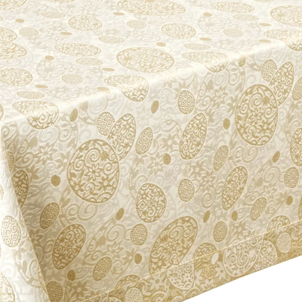 Obrus Wielkanocny Plamoodporny - Złote Pisanki - Kremowo-Złoty